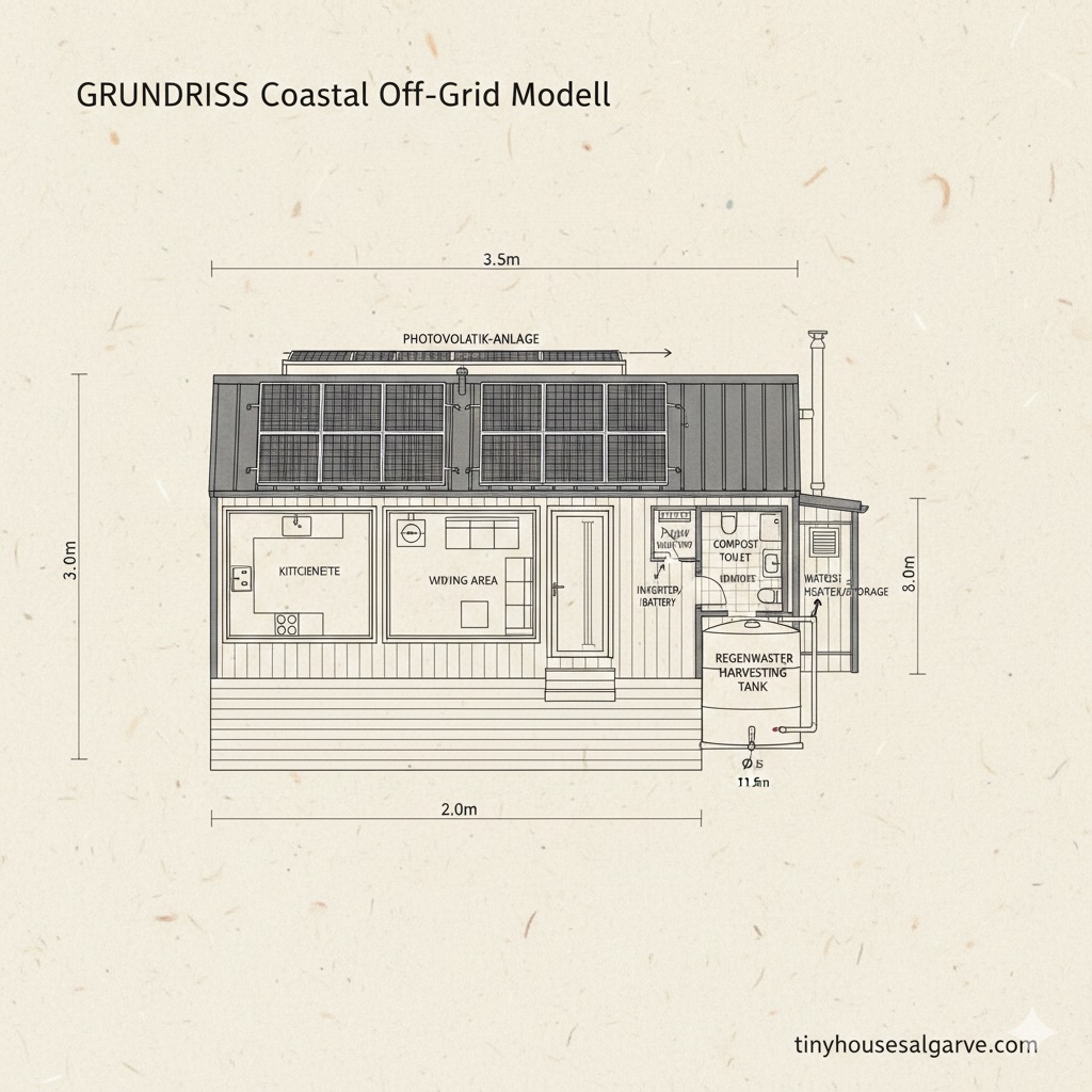 Das Coastal Off-Grid Modell setzt neue Maßstäbe für technisches Wohnen unter der Sonne Portugals ☀️ Das Herzstück bildet die leistungsstarke 5 kWp Photovoltaik-Anlage mit integriertem 10 kWh Lithium-Ionen-Speicher, die dich auch in den wenigen bewölkten Stunden autark hält 🔋 Die Außenwände sind mit hochwertigem Naturkork aus lokaler Produktion isoliert, was eine hervorragende thermische Effizienz gegen die Sommerhitze im Hinterland von Lagos bietet 🌡️ Ein ausgeklügeltes Regenwasser-Harvesting-System sammelt Niederschläge über die Dachfläche und leitet sie in einen 2000-Liter-Tank mit mehrstufigem Filtersystem und UV-Entkeimung für höchste Wasserqualität 💧 Im Bad sorgt eine hochmoderne wasserlose Komposttoilette für maximale Ressourcenschonung und einfache Entsorgung ohne Kanalanschluss 🚽 Die Fenster bestehen aus spezieller Dreifach-Sonnenschutzverglasung, um die Aufheizung der Innenräume an der Algarve zu minimieren 🏠 Der robuste Stahl-Leichtbau-Rahmen ist verzinkt und damit extrem resistent gegen die salzhaltige Atlantikluft bei Sagres 🌊 Alle technischen Komponenten sind für den Smart-Home-Einsatz vorbereitet, sodass du deinen Energie- und Wasserverbrauch jederzeit via App überwachen kannst 📱 Erlebe Technik, die Freiheit erst möglich macht, auf tinyhousesalgarve.com 🏠✨