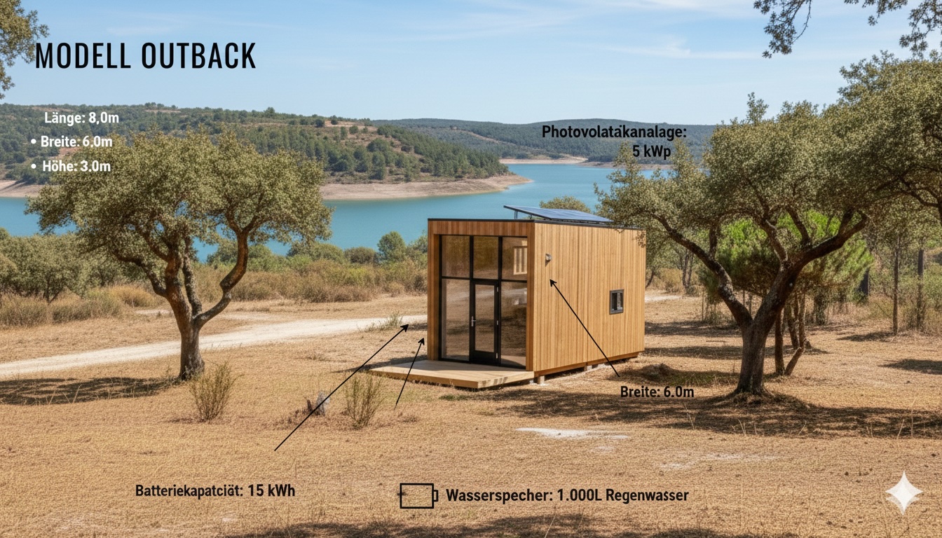 Beim Modell Outback liegt der Fokus auf absoluter Freiheit: Durch modernste Filtrationstechnologien nutzen wir das vorhandene Wasser des Barragems und verwandeln es in kostbare Ressourcen für dein tägliches Leben 💧. Ein besonderer Schwerpunkt unserer Planung liegt auf der rechtlichen Sicherheit und der Auswahl robuster Materialien, die der Feuchtigkeit am Wasser und dem mediterranen Klima gleichermaßen standhalten 🌊.
